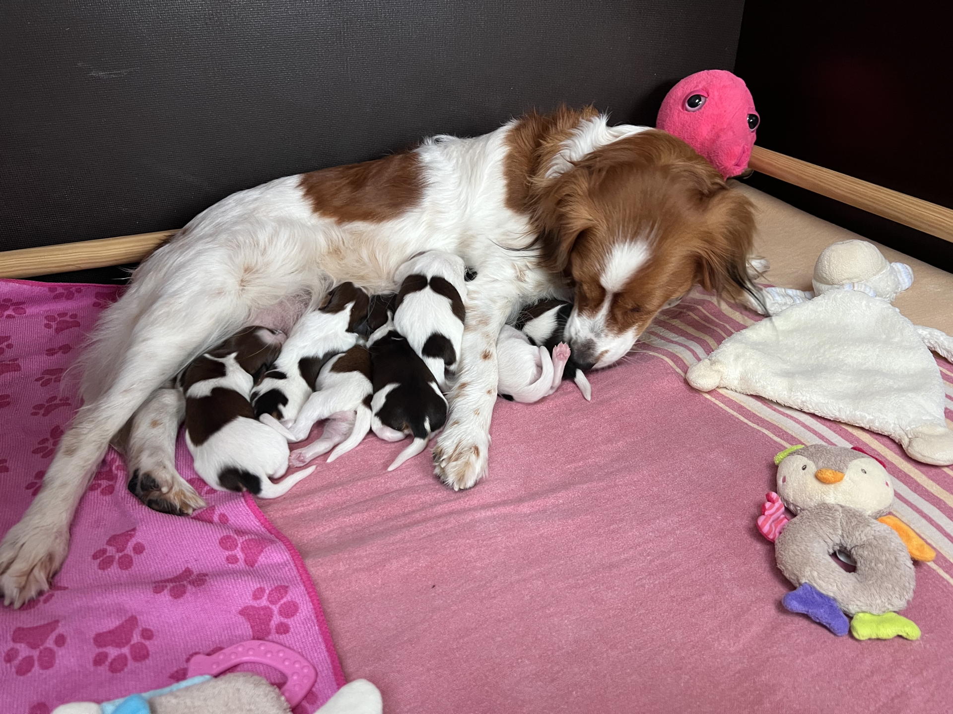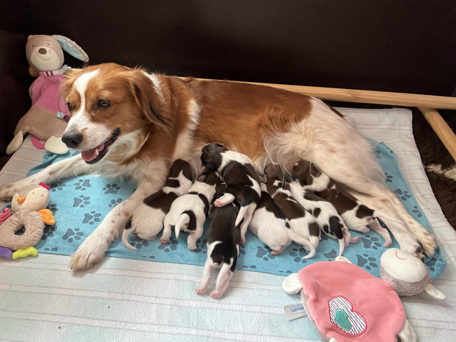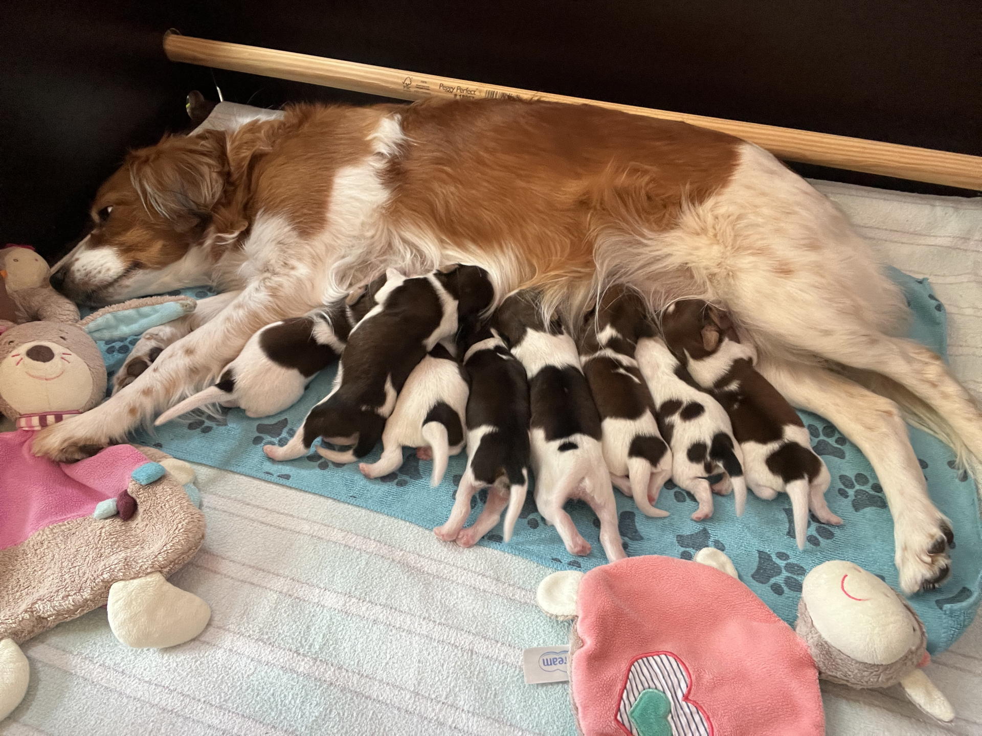 Am 21. Januar 2026 fuhren wir nach Luxemburg, um Aria und Uno miteinander zu verpaaren. 59 Tage später kamen dann 8 gesunde Welpen zur Welt.