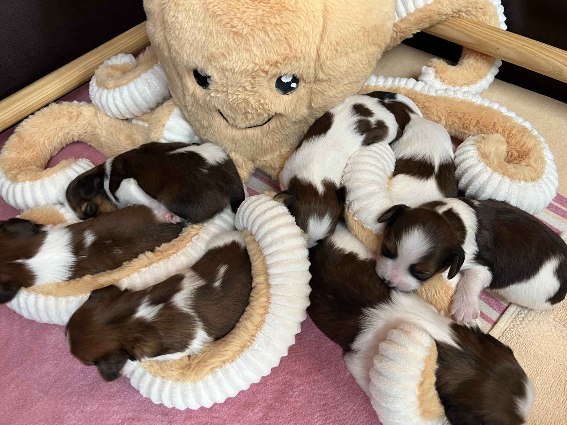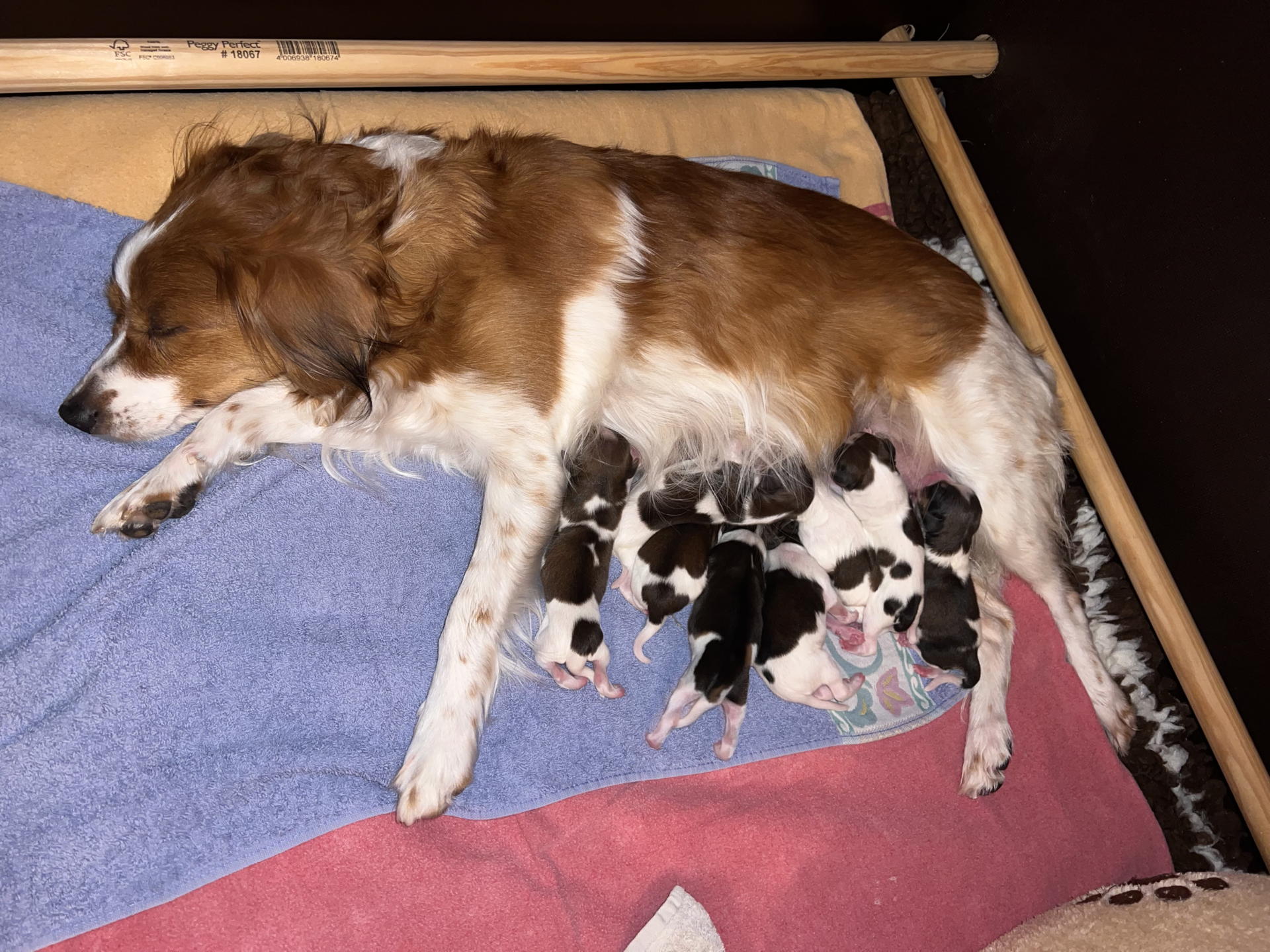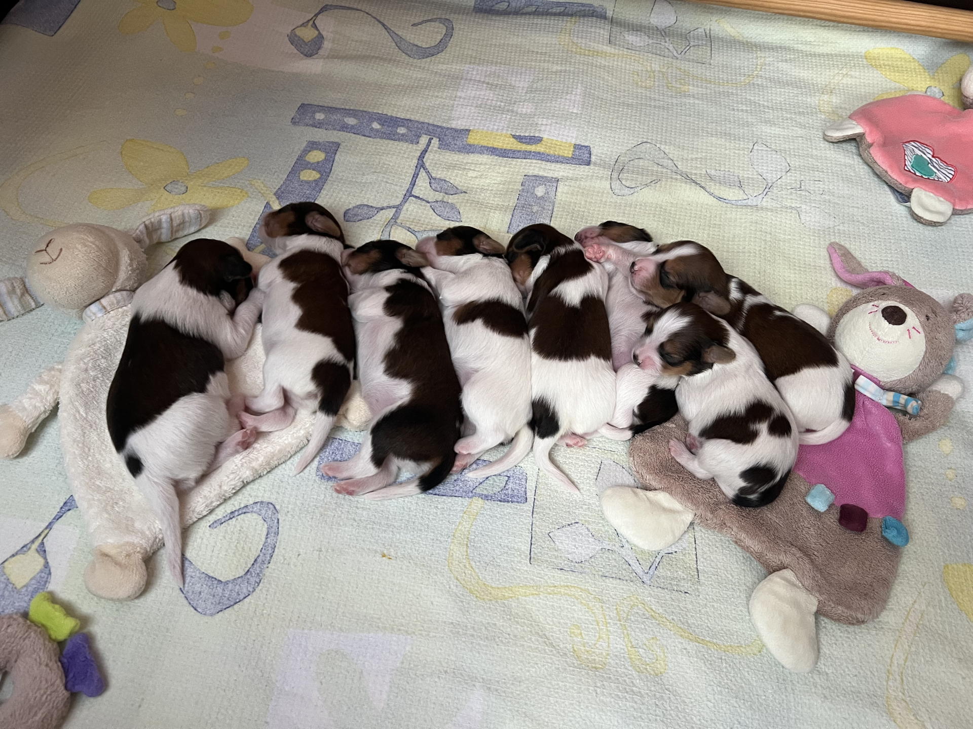 Am 21. Januar 2026 fuhren wir nach Luxemburg, um Aria und Uno miteinander zu verpaaren. 59 Tage später kamen dann 8 gesunde Welpen zur Welt.